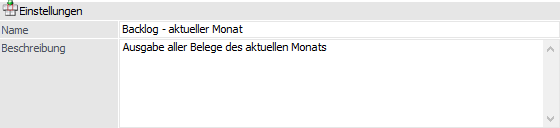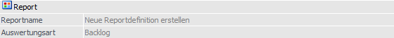 An dieser Stelle wird der Name des ausgewählten Reports angezeigt. Handelt es sich um eine Neuanlage einer Reportdefinition, so wird der Name "Neue Reportdefinition erstellen" ausgegeben.