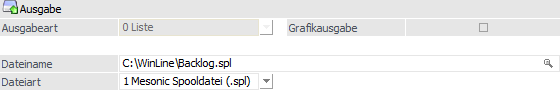 Diese Option steht nur zur Verfügung, wenn für einen Reporttyp "MesoCalc" die Ausgabeart "Liste" gewählt wurde. Wird die Grafikausgabe dann aktiviert, so wird der im MesoCalc-Sheet definierte Datenbereich als Grafik im Spoolfile dargestellt.