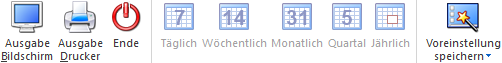 Die Aktualisierung der Grafik erfolgt durch Anwahl der Ribbon-Buttons "Täglich", "Wöchentlich", "Monatlich", "Quartal" bzw. "Jährlich".