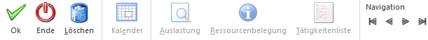 Mit den VCR-Buttons kann zwischen den einzelnen Stammdatensätzen (Ressourcen) geblättert werden.