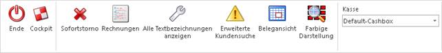 Schließt das Kassendashboard und wechselt zurück zur letzten Applikation bzw. zum Cockpit, falls die Kasse aus dem Cockpit heraus gestartet wurde.
