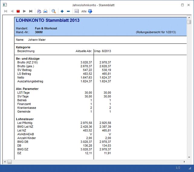 Durch einen Klick auf die AN-Nr. in der Auswertung wird das Jahreslohnkonto des entsprechenden AN geöffnet.