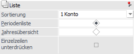 Hier kann entschieden werden, ob die Liste als "Periodenliste" oder als "Jahresübersicht" ausgedruckt werden soll.
