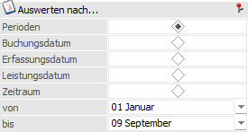 Abhängig von der vorher getroffenen Auswahl, kann hier eine Selektion nach Periode, Datum oder Zeitraum erfolgen.