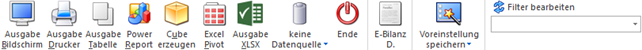 Der Button "Datenquelle verwenden" wird nur angeboten, wenn für diesen Bereich (bezogen auf den aktuellen Benutzer / Mandanten) zumindest eine private oder öffentliche Datenquelle existiert. Des Weiteren stehen nur die Ausgabevarianten "Power Report", "Cube erzeugen", "Excel Pivot" und "Ausgabe XLSX" zur Verfügung.