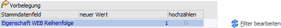 Diese Option steht nur bei Eigenschaften des Typs "2 - Integer" bzw. "4 - Double" zur Verfügung. Durch die Aktivierung der Checkbox wird der "neue Wert" an den ersten Stammdatensatz übergeben und die weiteren Stammdatensätze erhalten eine aufsteigende Nummernfolge.