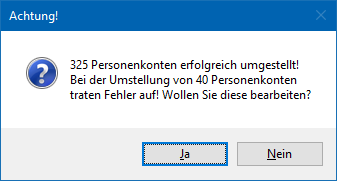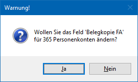 Durch Drücken des Buttons "Ok" bzw. der F5-Taste wird die Umstellung für alle ausgewählten Zeilen durchgeführt. Hierbei wird zunächst eine Meldung ausgegeben, welche mit "Ja" bestätigt werden muss.