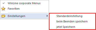Es werden die Einstellung des Schnellzugriffs beim Beenden der WinLine gespeichert.