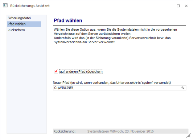 Der Schritt 2 wird nur dann angezeigt, wenn eine Systemdateien-Sicherung rückgesichert werden soll.