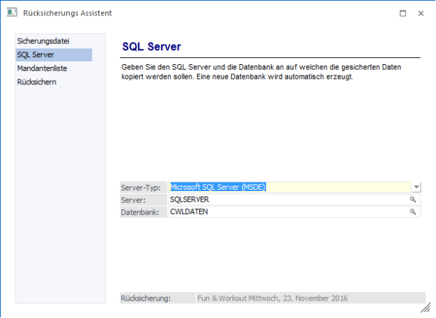Wenn der rückzusichernde Mandant nicht die gleiche Version hat, wie das Programm, dann muss die Rücksicherung in einer eigenen Datenbank erfolgen.