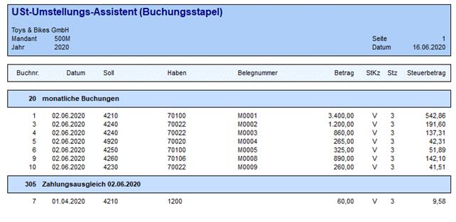 Über diesen Button wird die Übersicht der betroffenen Buchungsstapel incl. der Buchungen auf den Bildschirm ausgegeben.