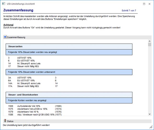 Im letzten Schritt des Assistenten werden alle Aktionen angezeigt, welche bei der Umstellung durchgeführt werden.