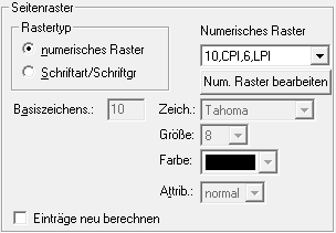 Mit Hilfe des Buttons "Num. Raster bearbeiten" können Rasterungen bearbeitet bzw. neue numerische Rasterungen definiert werden (nähere Information entnehmen Sie bitte dem Kapitel "Seiteneinstellungen - Numerische Raster").
