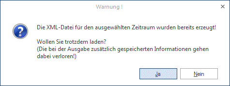 Ist bereits eine Datei für den gewählten Zeitraum vorhanden, so wird eine Warnung diesbezüglich angezeigt:
