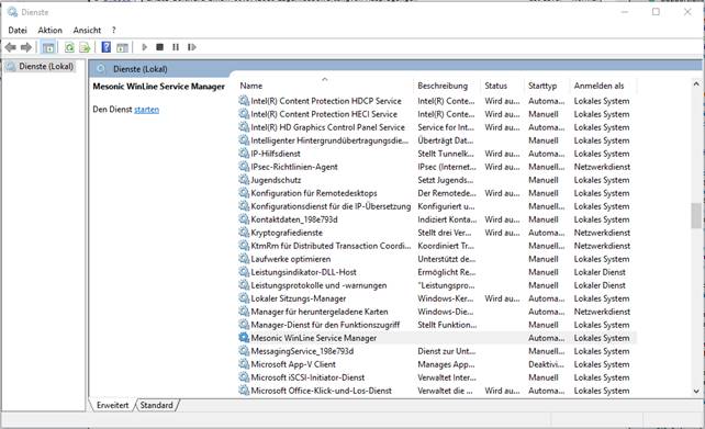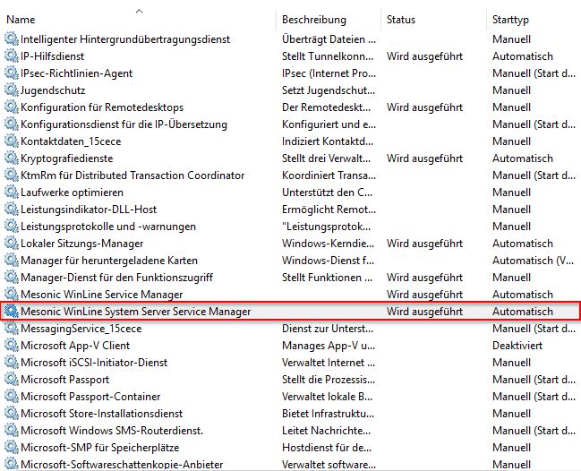 Mesonic WinLine System Server Service Manager Dienst