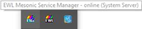 Um den Serverdienst des WinLine Servers zu starten bzw. zu stoppen kann der "Mesonic WinLine Service Manager" verwendet werden. Dieser kann im EWL Verzeichnis durch Ausführen der Datei "mesosvcwnd.exe" gestartet werden. Dadurch wird das "EWL Mesonic Service Manager"-Symbol im Tray angezeigt.