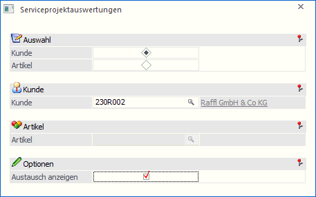 … kann ausgewertet werden, welcher Kunde welche Artikel unter Service hat bzw. welche Artikel bei welchem Kunden unter Service sind.