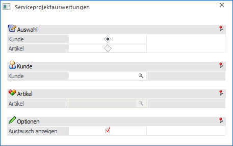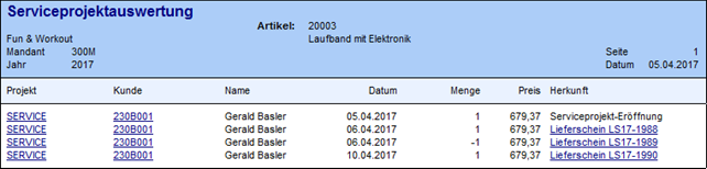 Berücksichtigt werden alle Belegzeilen (Lieferscheine oder Fakturen) und alle Projektjournalzeilen (Eröffnung + Isterfassung) mit jenen Artikeln, welche als Serviceartikel gekennzeichnet sind.