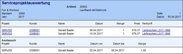 … kann ausgewertet werden, welcher Kunde welche Artikel unter Service hat bzw. welche Artikel bei welchem Kunden unter Service sind.