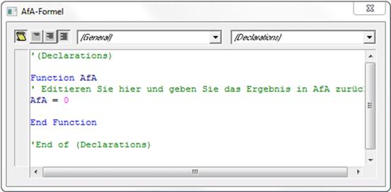 Mit dem Editieren-Button können bereits hinterlegte VB-Script-Formeln editiert werden. Klicken Sie dazu in ein Feld neben der Spalte Formel.