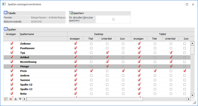 Deaktivierte Spalten des Typs "Desktop" werden in der WinLine mobile grundsätzlich nicht angezeigt.