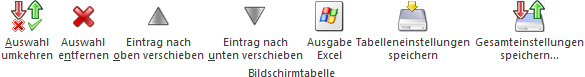Durch Anwahl dieses Buttons wird die markierte Zeile nach oben geschoben.