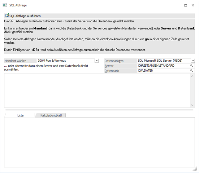 können Abfragen am SQL-Server ausgeführt werden. Dadurch müssen nicht die Tools des SQL-Servers verwendet werden, die oft auch gar nicht zur Verfügung stehen.