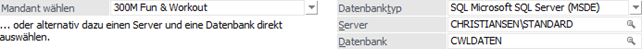 Aus der Auswahllistbox kann ein Mandant gewählt werden. Es werden alle Mandanten vorgeschlagen, die in den Datenbankverbindungen hinterlegt sind. Mit der Auswahl eines Mandanten werden gleich die Felder Datenbank Typ, Server und Datenbank ausgefüllt, diese Felder müssen dann nicht mehr extra bearbeitet werden.