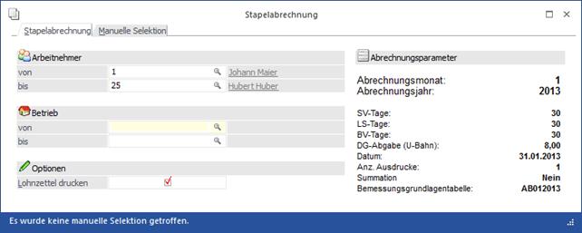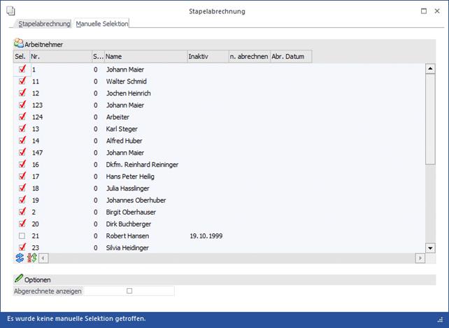 In der Stapelabrechnung werden alle AN gemäß den vorgenommenen Einstellungen abgerechnet.