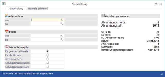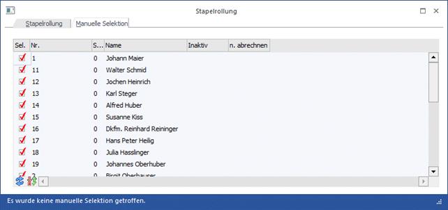 Über das Register "Manuelle Selektion" kann eine weitere Einschränkung der AN vorgenommen werden, für die eine Rollung durchgeführt werden soll.