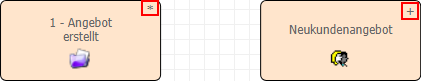Gibt es innerhalb des CRM-Prozesses eine nicht gespeicherte Änderung, so wird der Startschritt mit einem * gekennzeichnet. Handelt es sich hingegen um eine nicht gespeicherte Neuanlage, so erscheint die Kennzeichnung +.