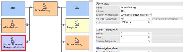 Über den Workfloweditor können zusätzliche Stati zur Verfügung gestellt werden, bzw. die bestehenden bei Bedarf angepasst werden.