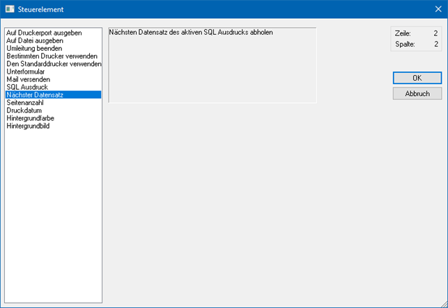 Mit dem Steuerelement "Nächster Datensatz" wird ein eingebautes SQL-Statement ausgelöst.