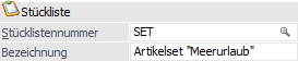 Eingabe einer Bezeichnung für die Stückliste. Auch die Bezeichnung kann von der Bezeichnung des Artikels abweichen.