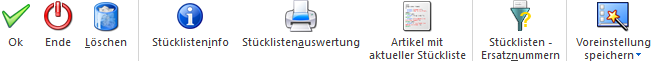 Bei der Anwahl des Buttons "Ende" bzw. der Taste ESC wird das Stücklistenfenster geschlossen und alle nicht gespeicherten Eingaben werden verworfen.