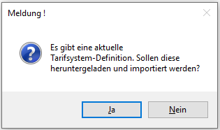 Bei aufrechter Internetverbindung kann am Mesonic Server die aktuellste TASY Definition abgeholt werden. Wird der Button angewählt, so wird überprüft, ob eine aktuellere Version als die Vorhandene zur Verfügung steht. Ist dies der Fall, so wird folgende Meldung angezeigt: