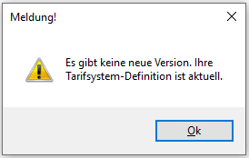 Ist die vorhandene TASY-Definition aktuell, dann wird folgende Meldung angezeigt: