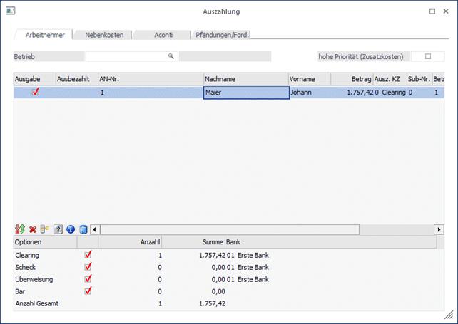 In der Auszahlung wird pro AN eine Auszahlungszeile mit einem kumulierten Wert erstellt.