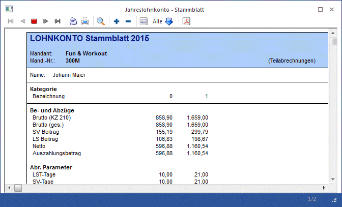 Am Jahreslohnkonto selbst, sind immer die kumulierten Werte aller Teilabrechnungen ersichtlich.