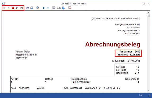 Im Lohnzettelstapeldruck werden immer alle vorhandenen Abrechnungen eines Arbeitnehmers ausgegeben.