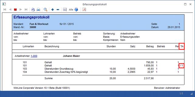 Sind Teilabrechnungen bei einem Arbeitnehmer erfasst worden, so werden diese abgerechnet und am Protokoll ausgewiesen.