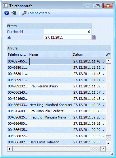 … kann eine Liste aller Telefonanrufe abgerufen werden. Voraussetzung dafür ist, dass das Programm CWLTAPI im Einsatz ist.