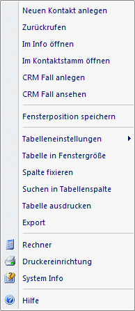 Über die rechte Maustaste stehen eine Reihe von weiteren Aktionen zur Verfügung, wobei die Anzahl der Funktionen davon abhängig ist, ob anhand der Nummer ein Datensatz gefunden wurde, oder nicht.