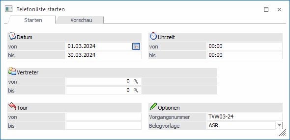 Die Vorgangsnummer kann in den Fakt-Parametern vorbelegt werden und wird beim Start der Telefonliste vorgeschlagen und automatisch um 1 hochgezählt.