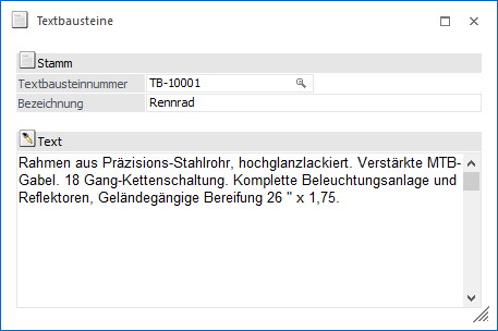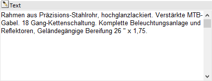 … als Fließtext erfasst. Solche Textbausteine können Produktbeschreibungen, Garantiehinweise, etc. darstellen.