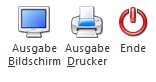Es kann gewählt werden, ob die Ausgabe am Bildschirm oder am Drucker, ausgegeben werden soll.