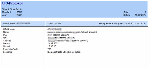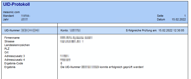 wird ein Protokoll über alle UID-Prüfungen, welche mittels der UID-Prüfung durchgeführt worden sind, ausgegeben.