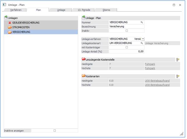 Wird die Checkbox aktiviert werden inaktive Umlagepläne im Umlage-Fenster nicht mehr angezeigt und auch nicht durchgeführt.