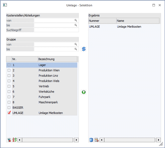Es wird die erste und die letzte Kostenstelle des jeweils selektierten Umlageplans angezeigt.