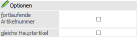 Wenn die Option "fortlaufende Nummer" oder "gleiche Hauptartikel" genutzt werden soll, dann muss die jeweilige Option zunächst aktiviert werden und dann an dieser Stelle eine Eingabe erfolgen.